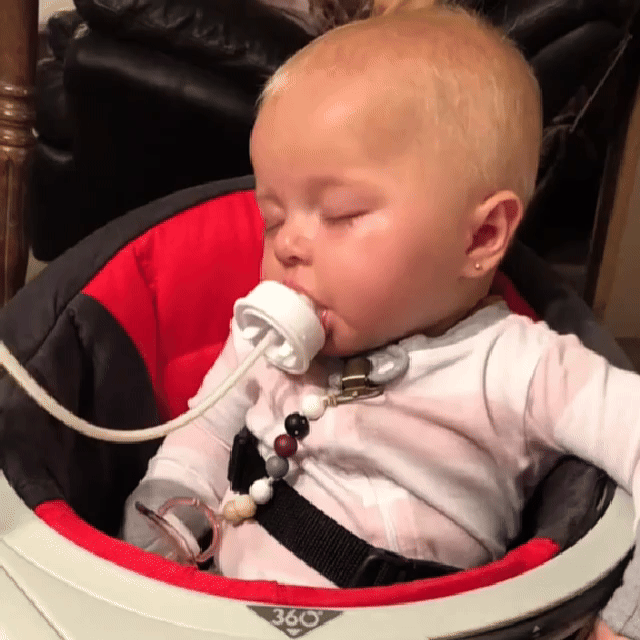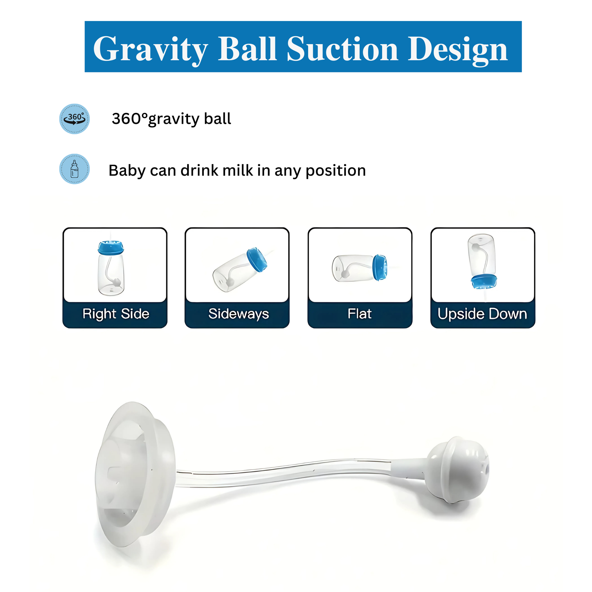 The bottle has a soft tube that lets your baby drink without holding it. Just place the nipple near their mouth — they feed at their own pace.